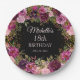 Burgundy Pink Floral Glitter Black 18th Birthday Paper Plate