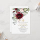 Burgundy Pink Flowers Baptism 1st Birthday Party Invitation