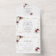 Burgundy Pink Flowers Gold Frame Wedding All In One Invitation