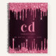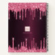 Burgundy pink glitter drips monogram initials name notebook