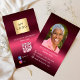 A burgundy and pink background colour. Personalise and add your business logo,photo, name, title and contact information. Add your website url/link to the Qr code. With Facebook and Instagram icons. White text.