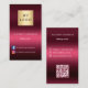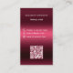 A burgundy and pink gradient background. Personalise and add your business logo,name, title and contact information. Add your website url/link to the Qr code. With Facebook and Instagram icons. White text.
