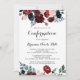 This burgundy pink navy floral confirmation invitation is perfect for a rustic religious event. The design features watercolor pink, blush, navy, blue and burgundy peonies, roses with green foliage neatly assembled into elegant bouquets.