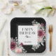 Burgundy Pink Rose Flora Black Happy Birthday Paper Plate