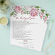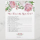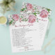 Burgundy and pink chic rose floral personalised bridal shower games (The Newlywed Game on the front and Who Knows the Bride the Best on the back). This pink and white roses wedding bridal shower game sheet is a good choice for a summer wedding shower or a fall / autumn wedding shower. Although, you can also use these wedding shower games for a spring or winter wedding shower as well. This rose flower wedding shower games sheet features beautiful watercolor pink and white rose bouquets with rose buds and green leaves. This rose wedding bridal shower game sheet has a great old country rose look, so it's perfect for a country style bridal shower. Two games in one!