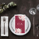 Burgundy pink roses florals monogram wedding napkin