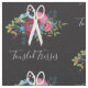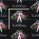 Floral hair stylist fabric in black with a white pair of scissors atop a pretty bouquet of pink and blue flowers, blue and orange berries, a large burgundy rose. Add your business name in a charming script.