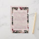 Elegant lined personal stationery with beautiful burgundy, pink, and white flowers and greenery on a black background.