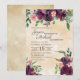 Romantic and rustic burgundy and pink watercolor floral and sage green leaves on botanical garden-style wedding invitation.