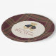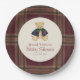 Celebrate your little one's arrival with these charming teddy bear baby shower paper plates. Featuring a vintage-inspired teddy bear adorned with a classic plaid cape, set against a rustic plaid background in deep burgundy and warm earth tones. These plates add a touch of cozy elegance to any baby shower, creating a memorable setting for guests. Perfect for serving treats and cake at a woodland or traditional baby shower theme. Make your baby shower decorations truly special with these adorable and functional paper plates.
