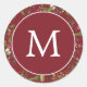 Burgundy Poinsettia Monogram Christmas Holiday Classic Round Sticker