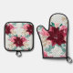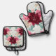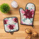 Burgundy Poinsettia Pink Roses Oven Mitt & Pot Holder Set