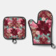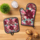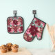 Burgundy Poinsettia Pink Roses Oven Mitt & Pot Holder Set