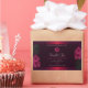 Make a lasting impression with this elegant and exotic product label design featuring pretty wine red hawaiian flowers and green palm leaves on a burgundy background. A cool palm leaf shadow matching to the shimmery border frames.