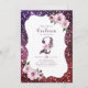 Burgundy purple faux sparkle glitter background and pink floral with big two in the centre, elegant and stylish, great second birthday invitations for girl.