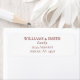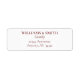 This address label design features burgundy red text on a white background. The text field for the family name is extra large to accommodate long names or doubled names.