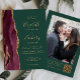 Burgundy Red Agate Green Photo QR Code Wedding Invitation