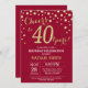 Burgundy Red and Gold 40th Birthday Diamond Invitation