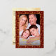 Custom Photo Burgundy Red and Gold Holly Cross Elegant Foil Holiday Postcard.