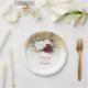 Burgundy Red and White Flowers Gold Wedding Paper Plate