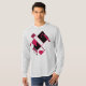 Contemporary and artistic. Bold shapes in burgundy red and black create an abstract, geometric design, which is tilted diagonally on the "ash" grey, long-sleeved t-shirt pictured here. Also available in other styles and colours. Inspired by the Mid-century Modern style, the design projects a bright and lively artistic quality for a versatile and hip addition to your casual and everyday wear (whether at home, socialising with friends, playing sports, or running about town). The shirt design as "wearable art" also expresses a sense of your individualised style, contributing to a feeling of being "together" and creative in your personal wardrobe choices.