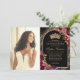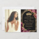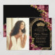 Burgundy Red Black Gold Floral Photo Quinceanera Invitation