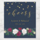 Custom-designed wedding bottle labels featuring burgundy red floral with gold calligraphy design.