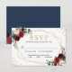 Burgundy Blush Floral Navy Blue - Faux Gold Foil / Glitters RSVP Card.