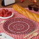 Cream fibonacci sequence spiral resembles a snail on a burgundy red background A unique tableware option for your next retirement or mathematics themed party.