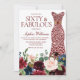 Burgundy Red Heart Dress Floral 60th Birthday Sixty & Fabulous Sixtieth Birthday Party Invitation