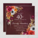 Burgundy Red Fall Flowers Script 40th Birthday Invitation