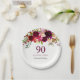 Burgundy Red Floral Boho 90th Birthday Party Paper Plate