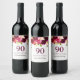 Burgundy Red Floral Boho 90th Birthday Party Wine Label