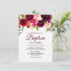 Burgundy Red Floral Boho Baby Girl Baptism Invite