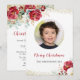 Burgundy Red Floral Family Picture Christmas Party Invitation