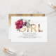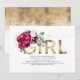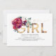 Elegant and unique blush pink, burgundy red flowers and gold typography baby shower invitations "It's a Girl"