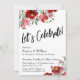 Burgundy Red Floral Let's Celebrate Typography Invitation
