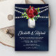 Burgundy Red Floral Mason Jar Navy Blue Wedding Invitation