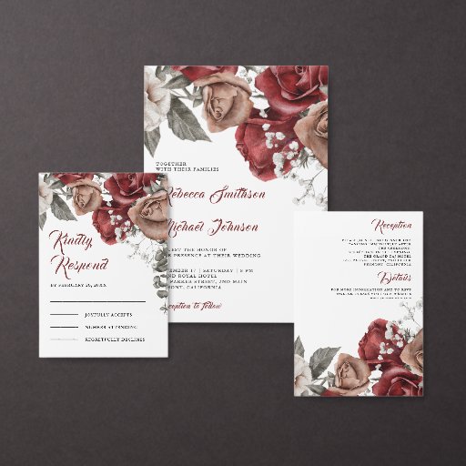 Burgundy Red Floral QR Code RSVP Wedding Website Enclosure Card