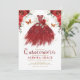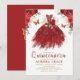 Burgundy Red Flower Quinceañera Princess Dress Invitation