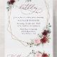 Invite friends and family in style and set the tone for your special day with this charming birthday invitation. Design features burgundy and blush pink watercolor flowers, greenery and gold frame on white background.