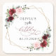 Burgundy Red Flowers, Pink Flowers, Birthday Square Paper Coaster