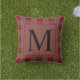 Burgundy Red Gingham Patterns Monogram Name Gift Cushion