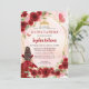 Burgundy Red Glam Gold Floral Princess Quinceañera Invitation