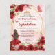 Burgundy Red Glam Gold Floral Princess Quinceañera Invitation Postcard
