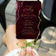 Burgundy Red Gold Agate Script Wedding Program Hand Fan