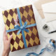 Burgundy Red Gold Geometry Chessboard Diamond Cut Wrapping Paper