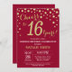 Burgundy Red Gold Surprise 16th Birthday Diamond Invitation