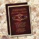 This formal wedding anniversary celebration invitation features a gold number 50 framed within a heart image gold scroll frame on an elegant burnished burgundy red background. The customisable text is also in gold, with the image and the text framed in whole with a matching gold border frame. The back of the invitation is burgundy red blue. **Please note -- the image is printed on the card, which contains no metal substance.**