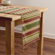 Burgundy Red Green Ochre Yellow Stripes Pattern Long Table Runner